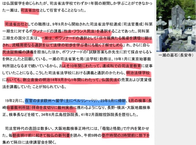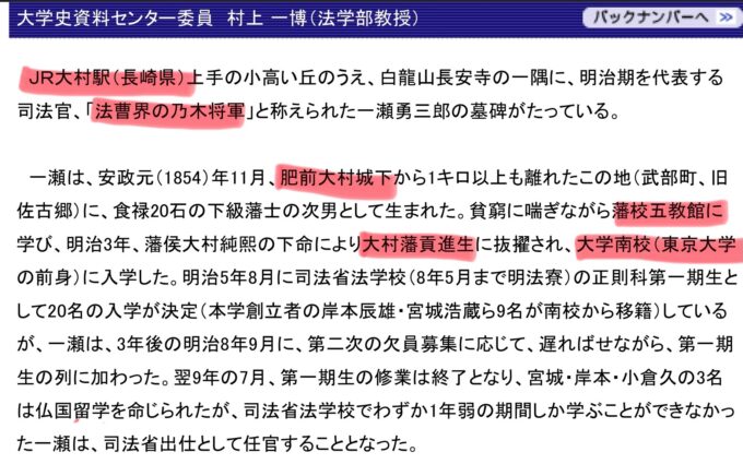 同窓会は歴史に興味がなく、また長崎大学に法学部がないためか、教員の皆様は法律的な知識の刺激を受けることがなく無関心で、日本の近代法に貢献した一瀬先輩にはスポットライトがあたっていません。