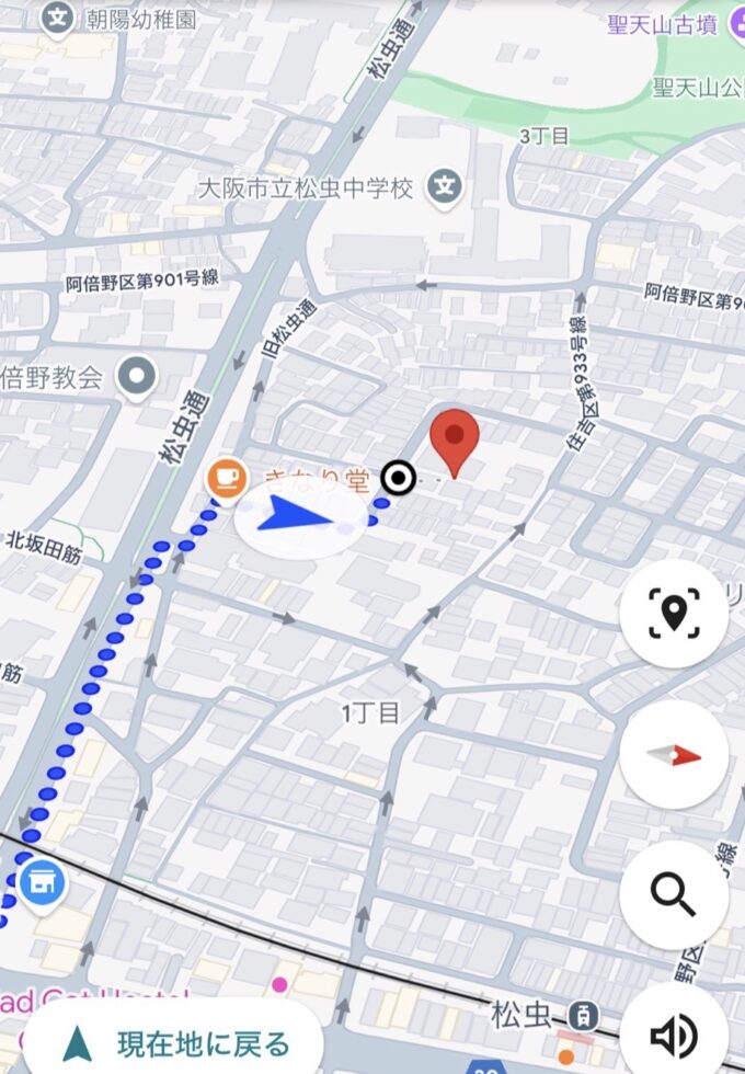 大阪市阿倍野区松虫というところにあります。アベノハルカスビルが見えました。