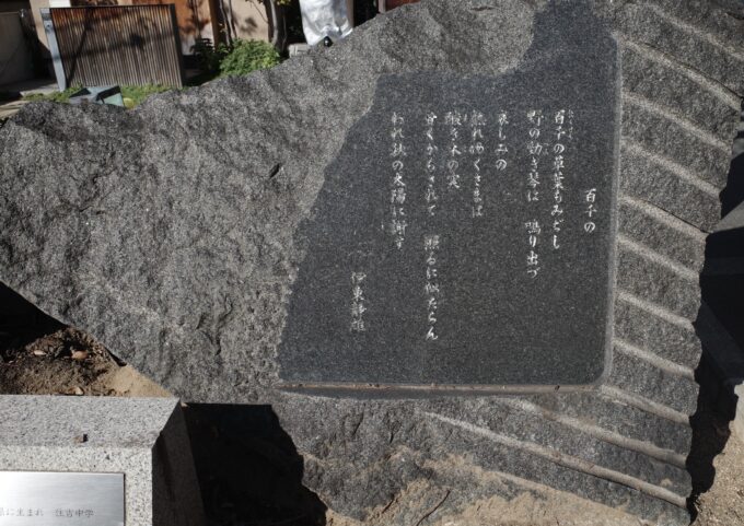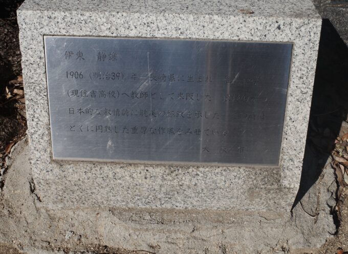 大阪には、いくつか大村の先輩方の「夢の跡」(あるいは「残り香」)がありますが、今回は。伊東静雄先輩の碑。