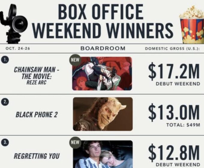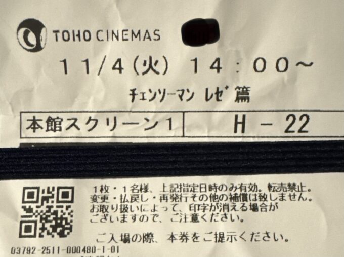 時間があったので、映画館へ。チェンソーマン レゼ篇に行ってきました。現在、アメリカでも1位を記録している映画。