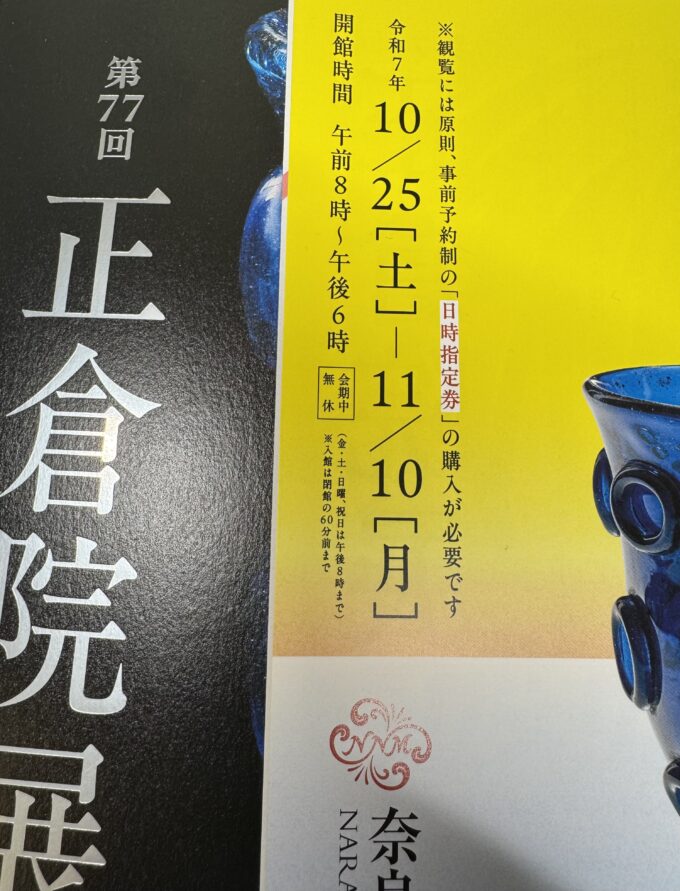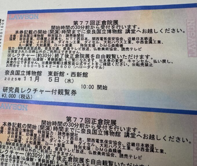 奈良国立博物館で年1回開催の正倉院展、入場は予約制。今回は「事前レクチャー付き入場券」にしました。入場前に、研究員の方から、見どころのレクチャーがあるものです。