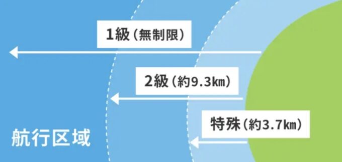 1級は、日本本土の沿岸から、日本の領海内ならば、距離無制限に小型船舶を操縦できます。日本本土から1000キロ以上離れた小笠原まで可能です。