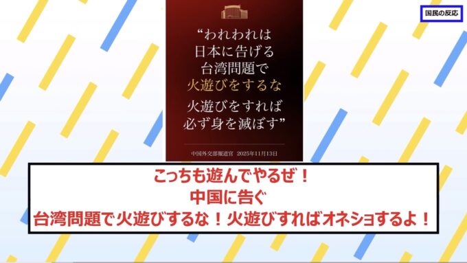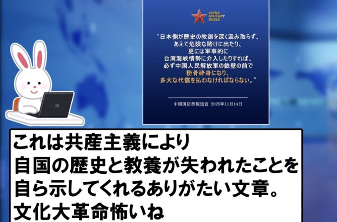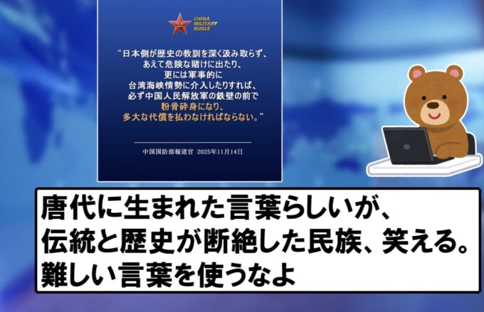 教養と教育レベルが低い中国人民なら、ビビるかもしれませんが。日本国民から見ると、「中国政府=バカ」だと見えます。