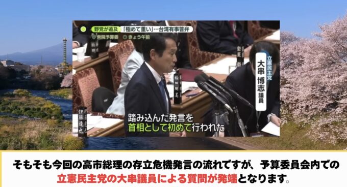 ↑立憲民主党の国会質問に始まり、それを受け、中国・大阪総領事によるXでの投稿から問題が発展します。