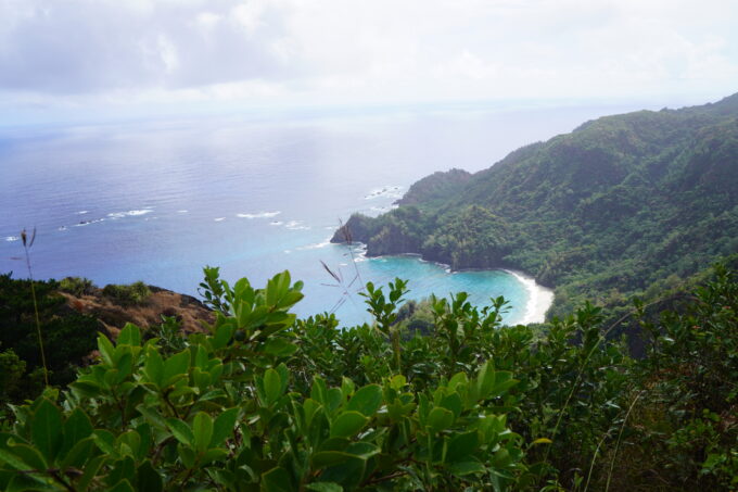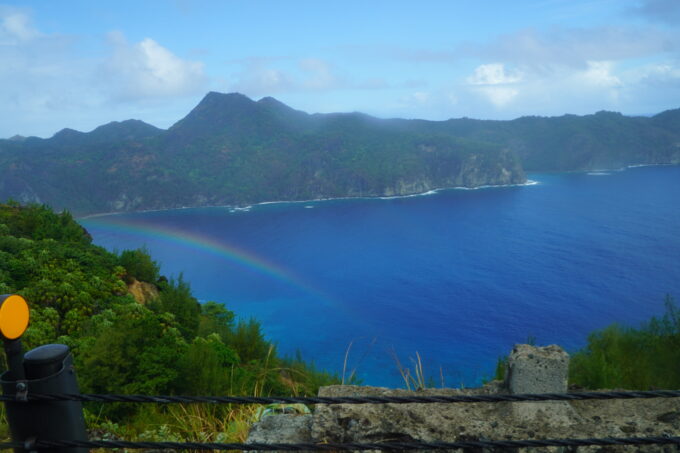 岬の先は、第二次大戦中、ブッシュ元大統領が日本軍から打ち落とされた場所です。3人乗りの飛行機で小笠原を攻撃中に、日本軍の対空砲火で撃墜されました。乗員3名のうち2名戦死。ブッシュ元大統領だけが生存。