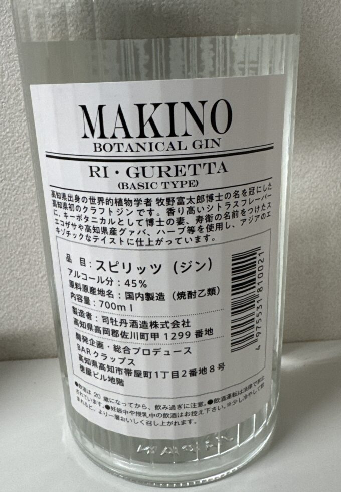 値段は覚えていません。ジンの味を語るほど当方は酒通(つう)ではないので、味の解説は省略します。