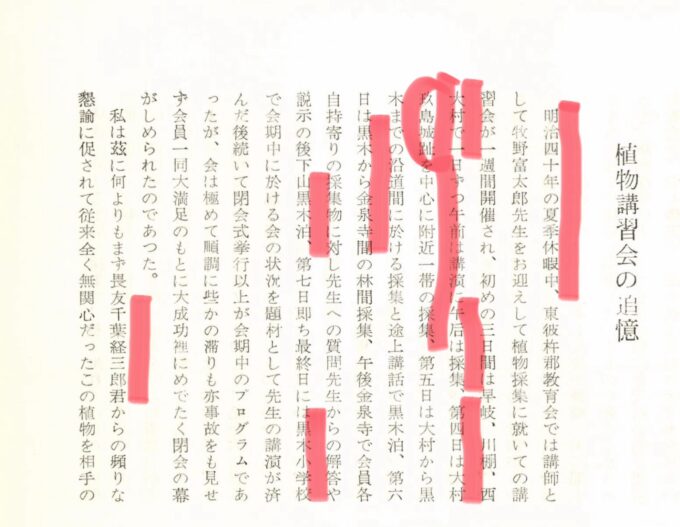 牧野博士と植物採集のことは1ページから26ページまで書かれています。また、千葉というのは地名ではなく人名で、郡(こおり)小学校の校長先生だった千葉氏で、ヒゼンマユミを発見された方です。