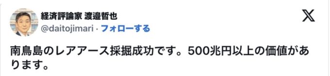 行動し挑戦した高市政権の決定が、今後の日本の資源戦略に良い影響があり、そして国民生活向上につながる出来事になりそうです。