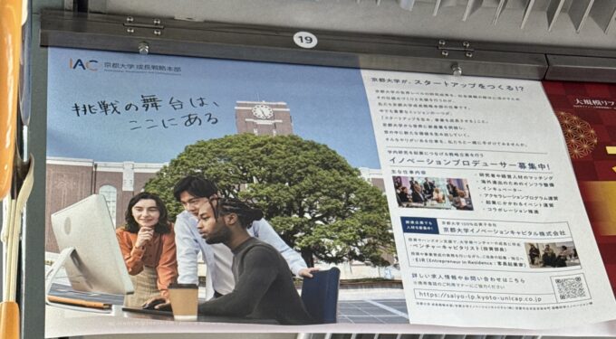 電車内の広告で、京都大学がスタートアップを始めたとの広告