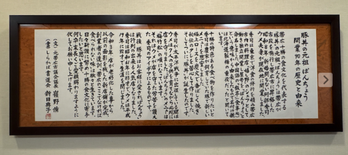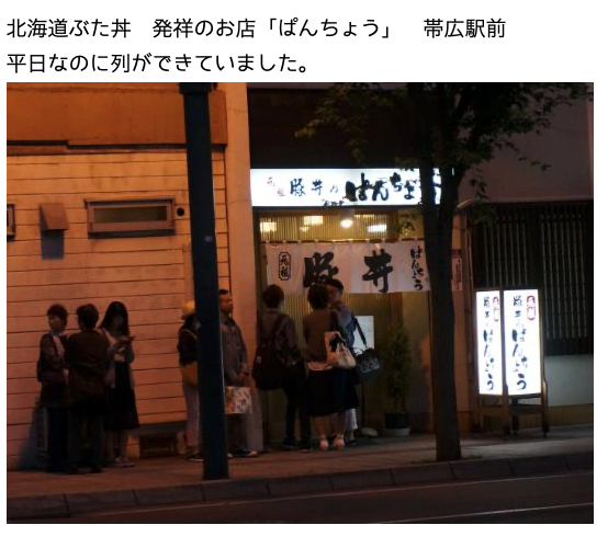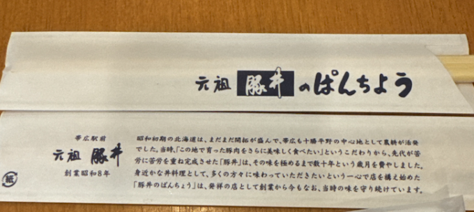 ↑日本の「豚(ぶた)どん」発祥の地・帯広の「ぱんちょう」へ。15時すぎに入ったので、並ばずに入店できました。長く続く有名店です。