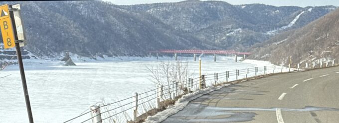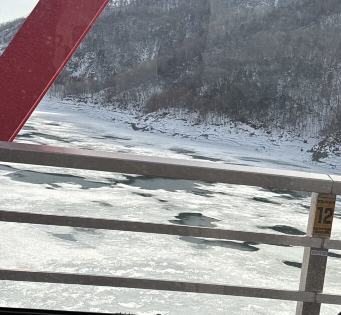 夏はクルマで行けますが、冬は、雪道の運転経験がある人ではないと、雪が多い年は、なかなか難しいルートです。市街地から約40キロ離れています。川が凍結していました。