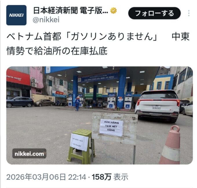 日経のニュースが正しいなら、ベトナムは、15日分の備蓄がなくなり、石油が不足してきました。