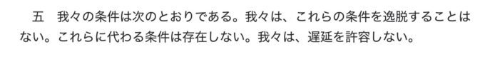 *無条件降伏ではないことを証明する(解釈できる)ポツダム宣言第5項:第5項は条件です