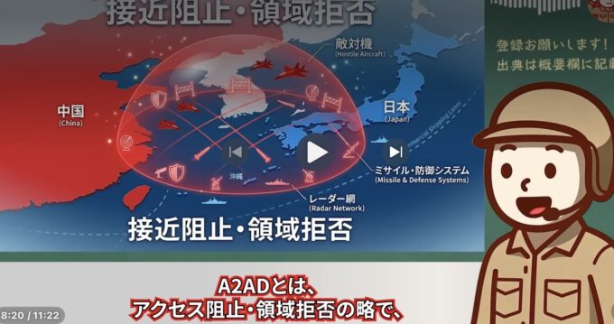 ↓動画で理解できます。中国の防空網、日本の九州から大阪まで及んで、中国が空を支配していたんですね。カモノハシで、中国の防空網を破壊できそうです。日本の空なんですから。