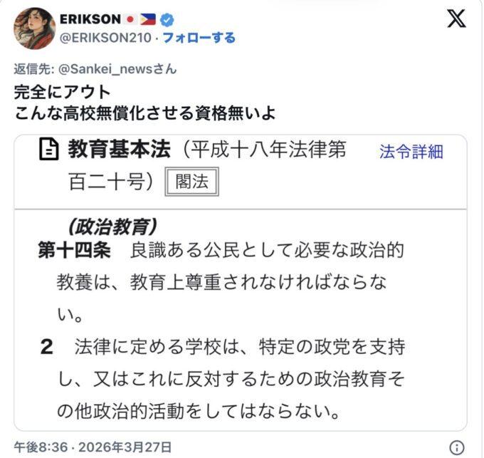これって、教育基本法に抵触(ていしょく)してないか?