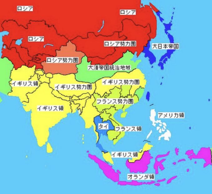 第二次大戦前は、日本とタイ王国以外、アジアはすべてが欧米列強の植民地でした。