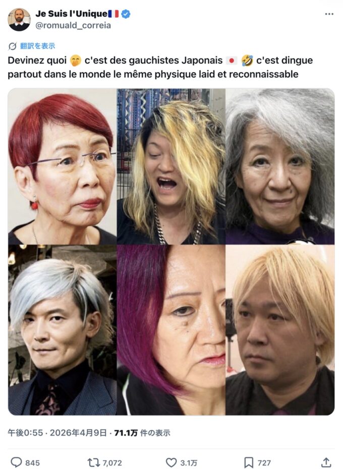 何だと思う?🤭 日本の左翼たちだよ🇯🇵 🤣 世界中どこでも同じ醜くて一目で分かる顔つきなんて、マジでクレイジーだ