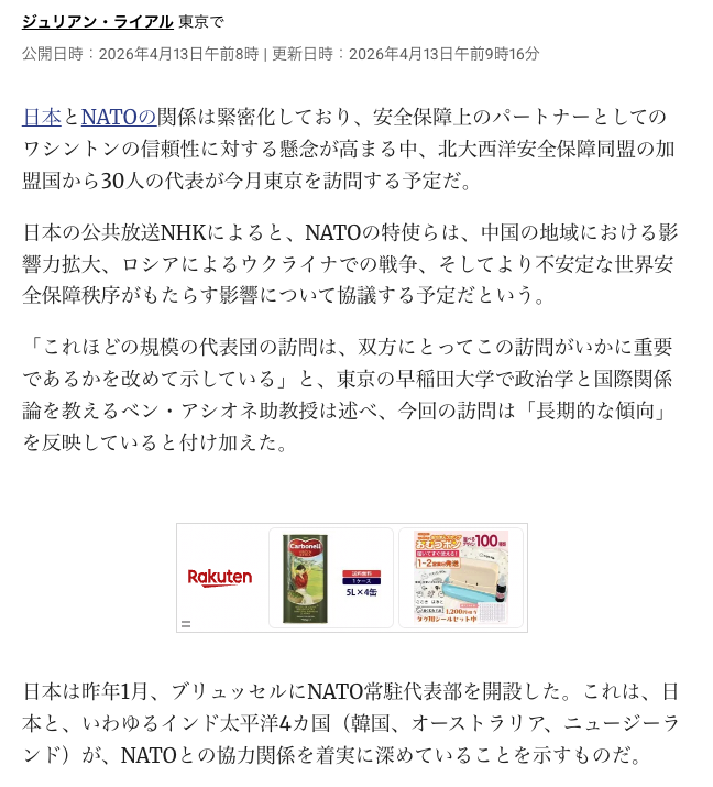 NATOの30カ国の特使は、4月15日に、すでに日本に到着しています。